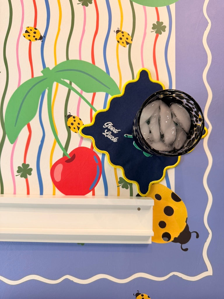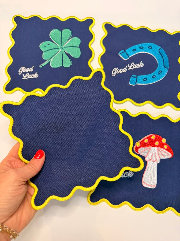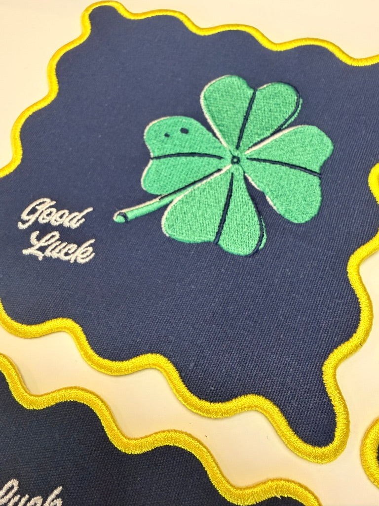 - Embroidered with designs of lucky items so you can give your crew the best game night vibes possible.